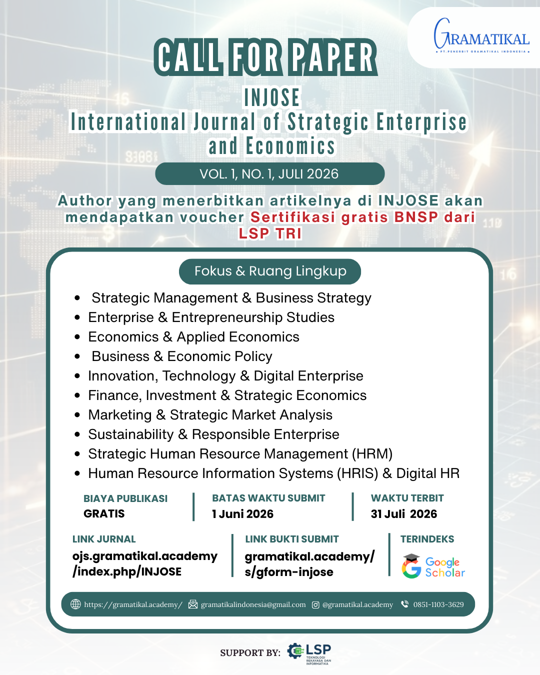 OFFICE: Ruko Royal B17, Jalan Sawangan Permai, Kota Depok, Jawa Barat Copyright © INJOSE: International Journal of Strategic Enterprise and Economics |