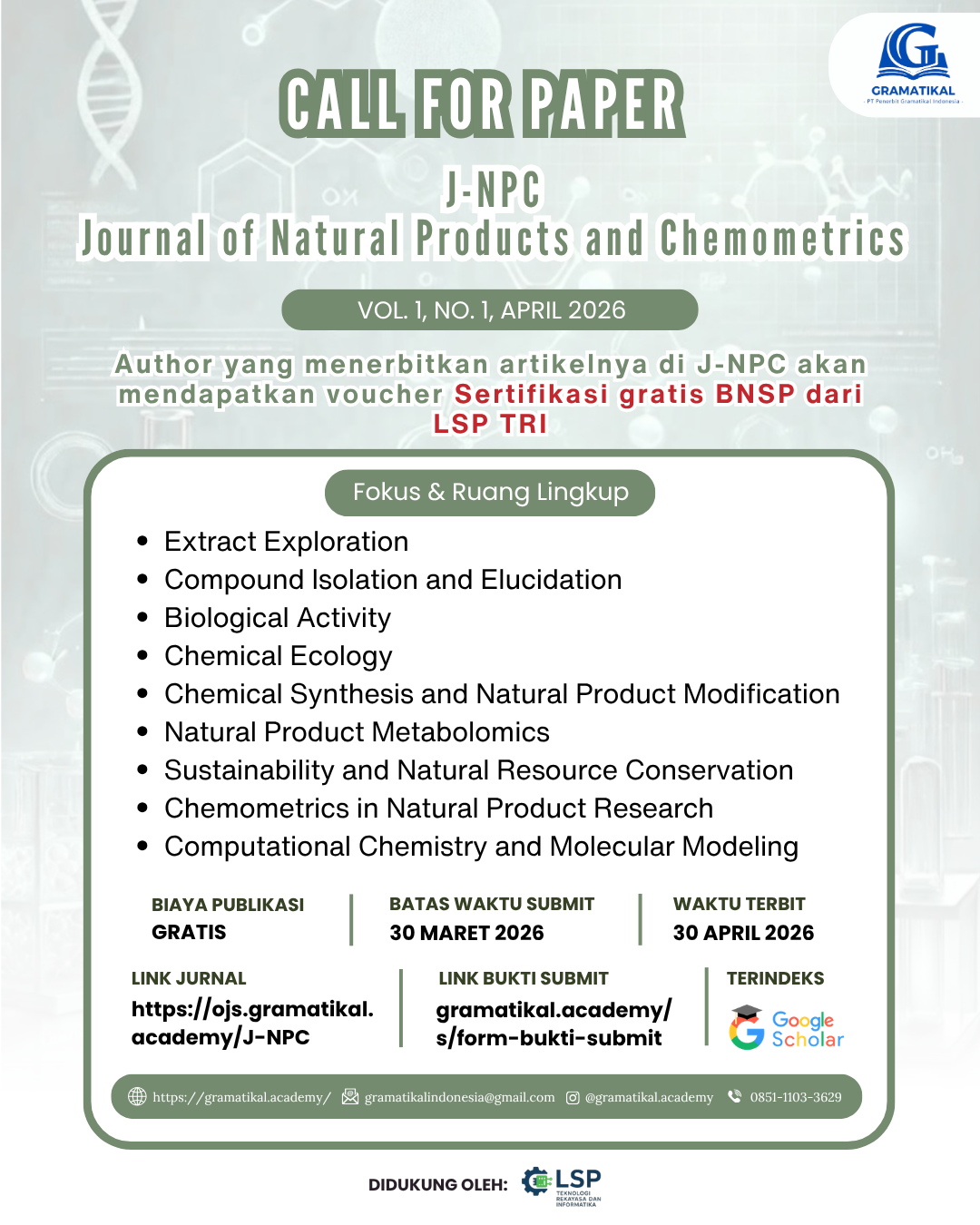 OFFICE: Ruko Royal B17, Jalan Sawangan Permai, Kota Depok, Jawa Barat Hak Cipta © J-NPC: Journal of Natural Products and Chemometrics |